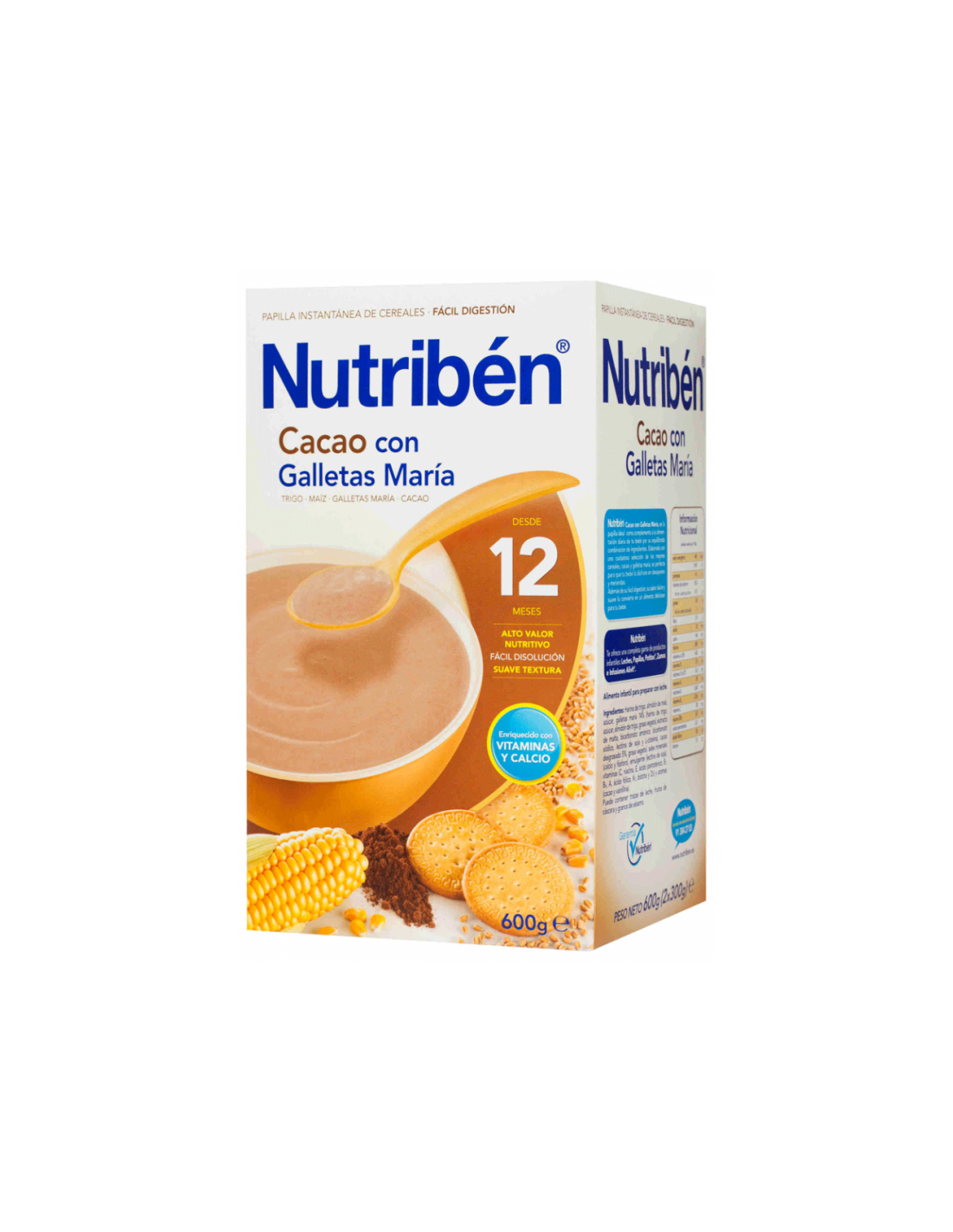 Nutribén® Cacao con galletas maría es una papilla instantánea de cereales destinadas para niños a partir del 12º mes.